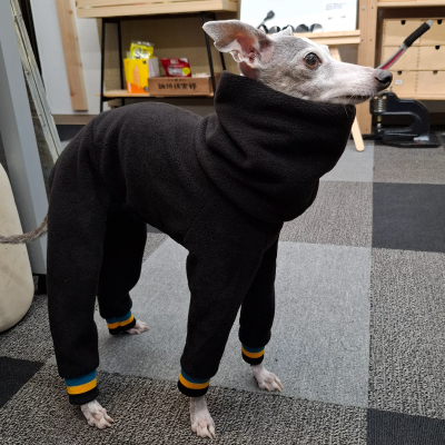 犬服のジャージ、スタジャン、スカジャン用に洗濯と摩擦に強く発色の綺麗な当店オリジナルライン入りリブニットです。