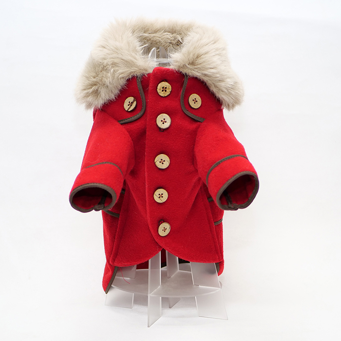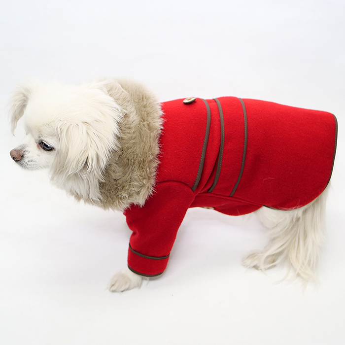 身頃に布帛生地、衿にファー生地使用して製作しています。
