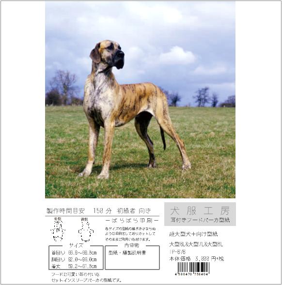 耳付きフードパーカ型紙 ばらばら印刷 超大型犬+大型犬6L〜大型犬8L